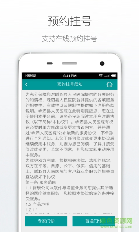 患者可以通过手机客户端,在线预约挂号医院各科室专家、普通门诊.