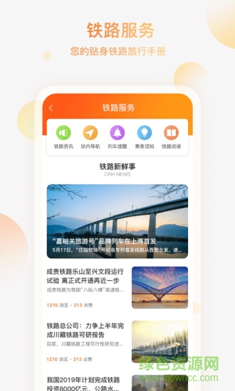 1.为旅客提供了如铁路资讯,站内导航,列车上下车提醒,列车乘坐须知等相关铁路服务