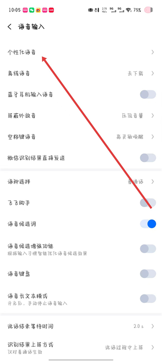 3、在语音输入界面,选择个性化语音选项,进入个性化语音管理页面。