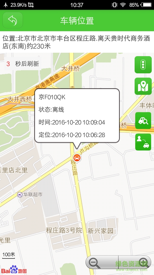 2、实时监控:在地图上实时显示车辆位置并描绘行驶过的路线。