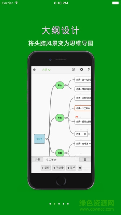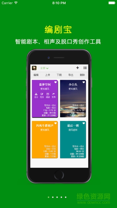编剧宝使用了创新性的ui设计方式,保证您从极小的iphone到极大的智能电视都能操控自如;引入了可扩展的模板引擎,一键生成电影,微电影,电视等产品雏形。引入了可扩展的主题引擎,让写作平台的风格去适应您的风格。引入了思维导图式的大纲设计及角色设计;引入了随时预览生成的写作模块及及基于.juben的标记语言的写作方式并可写作时实现大纲管理的功能。编剧宝内置了专业的基于编剧,传媒,剧本与稿件的原创成长剧本展示与交流社区,提供一键出版的发布机制。更可以在.juben,html及pdf间自由切换。