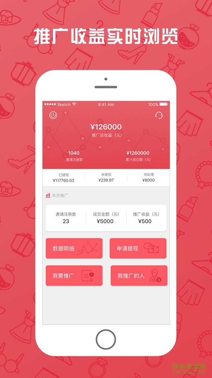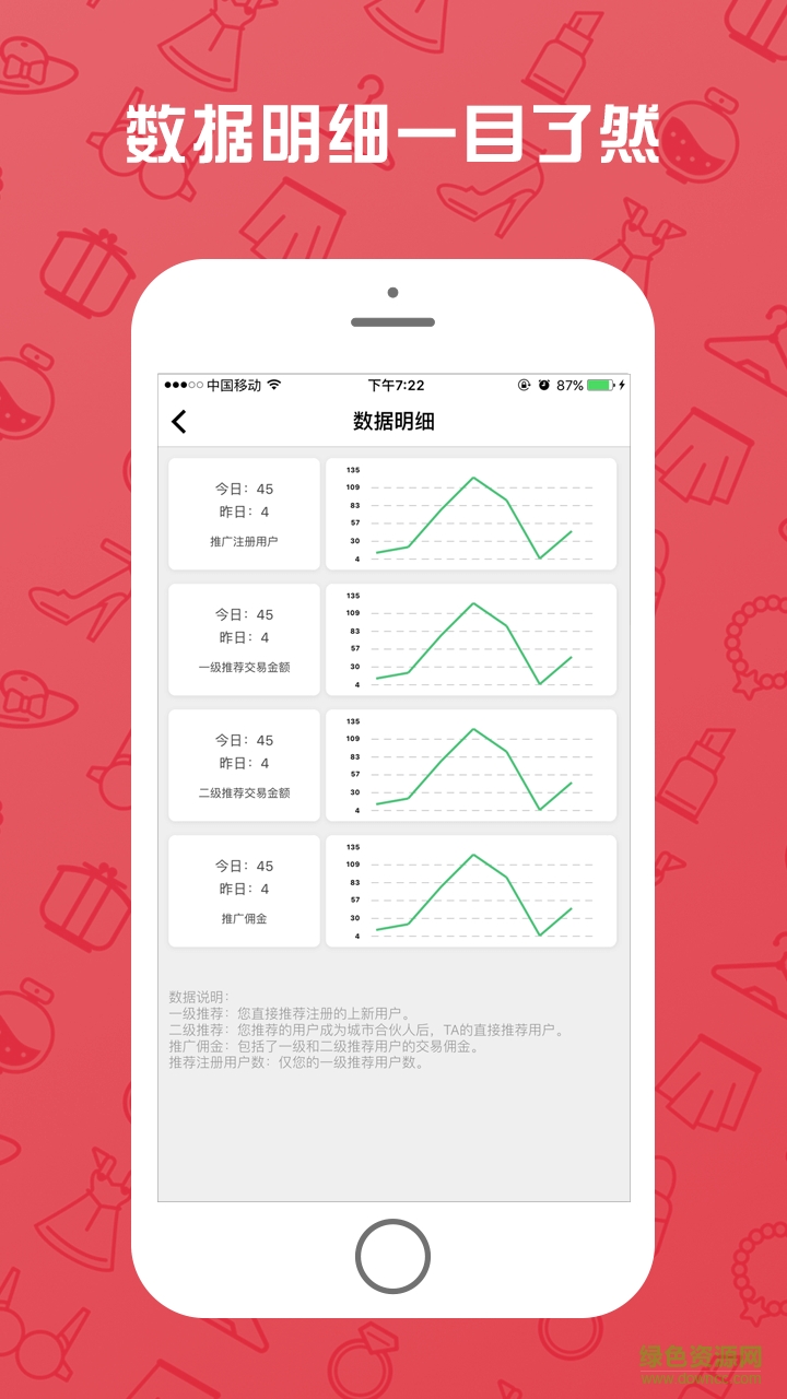 1.数据明细一目了然,苏式掌握用户推荐数,和推广佣金说明