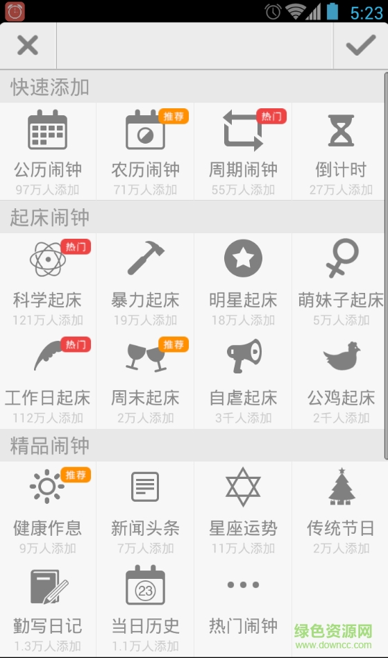 闹钟强人是一款功能十分强大的是一款非常实用的定时app。它能给您提供各种定时功能,无论你是严重的起床困难户它都可以用各种方法让您准时起床,上班工作出行等不再迟到。不管是闹钟定时,不想错过的节目定时提醒,还是吃药提醒,生活习惯提醒,还是定时为您发送短信,定时系统设置飞行模式,它都可以一手掌握,是一款功能强大的生活小工具,喜欢的朋友赶紧来绿色资源网下载体验吧!
