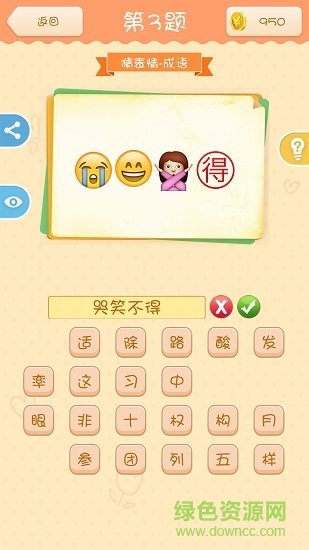 疯狂猜猜乐汇集了智者争霸、猜谜语、猜谚语、猜歇后语、猜国旗、猜货币、猜景点、猜脸萌、猜表情等多种玩法、多个关卡,全面挑战你的娱乐知识面,玩法简单,趣味无限,无年龄段划分,让你脑洞大开,尽情畅游。画风简介鲜明,提示风趣机智,只有你猜不到,没有我们想不到。支持好友分享,在你遇到困难时及时求助朋友圈,众人同心,其利断金。