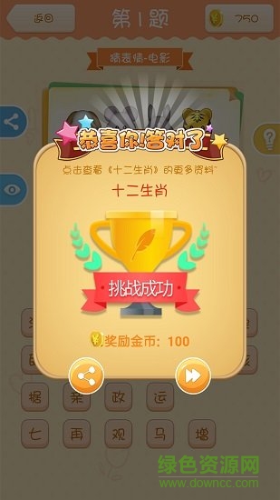 根据图片或者音乐,从若干备选字中选出正确的答案