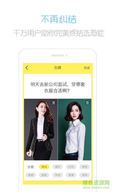 一个问题搭配两张精美图片,轻松点击即可表达你的个性与态度