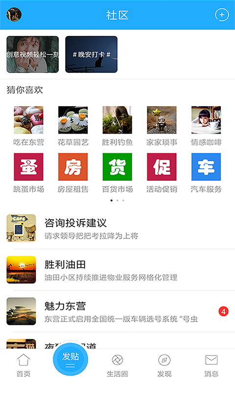 胜利社区app是一款油城人民自己设计的专为油城人民服务的网上家园,在这里每天有上万人次的浏览量,在这个app包含了大量的信息、资讯,这里提供大量的房产、汽车、招聘、求职、租房、交友等一系列各种各样的生活信息,无论你在哪里都可以了解到你想要的信息,关注你想关注的事.