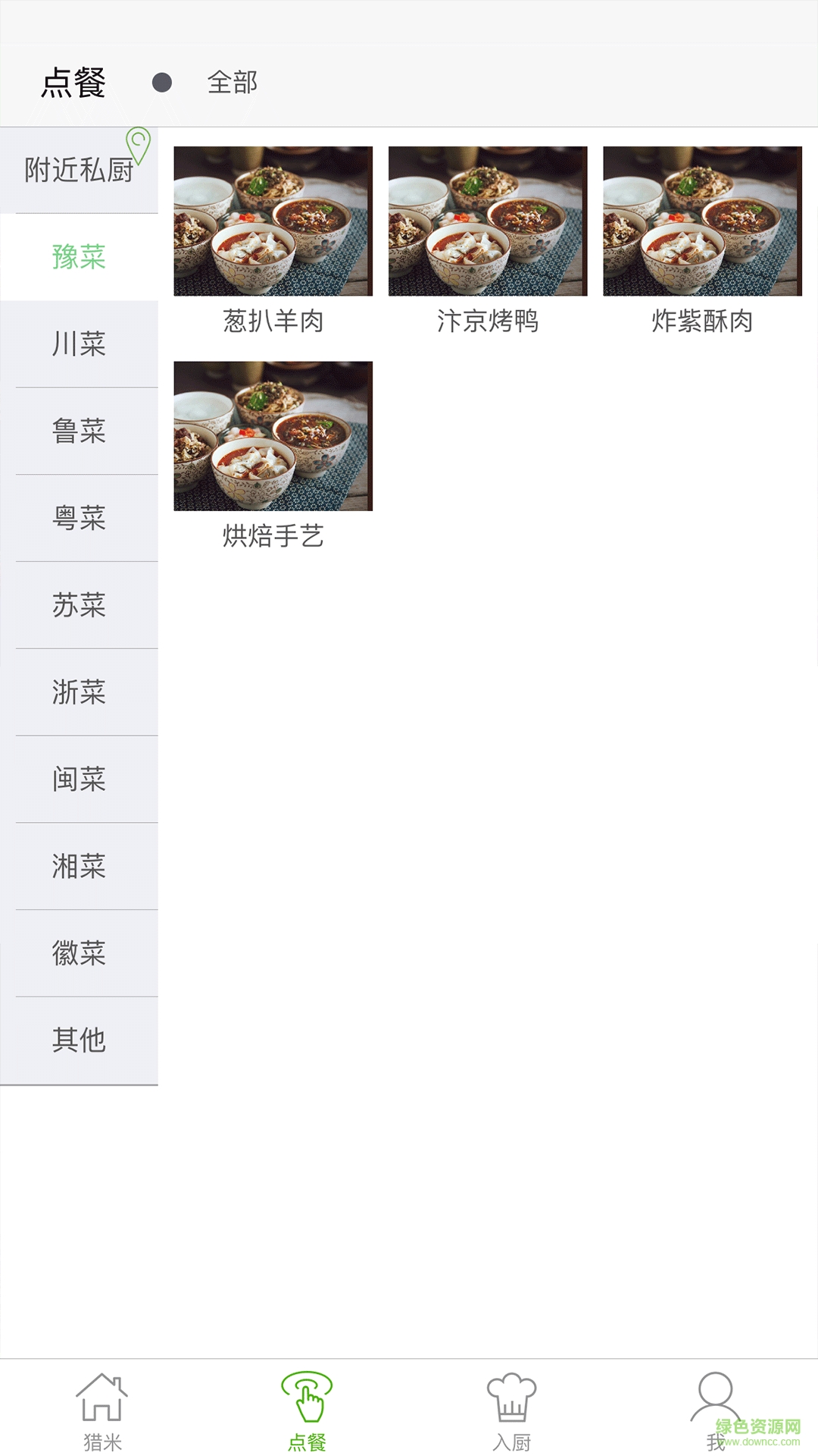 2、该应用涵盖四个模块,猎米,点餐,私厨和我的模块。