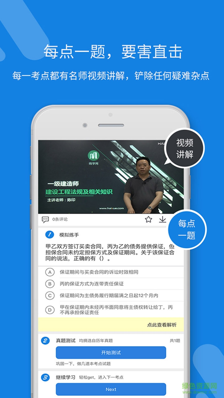 白象一建是一款专门为一级建造师考试打造的一款备考app。是一款免费在线学习软件,权威导师帮你梳理重难点考点和基础必考考点,还有海量名师视频帮你分析解题,更有多种练习方式,全方位的帮助你轻松通过一级建造师考试。参加一级建造师的朋友们是一款非常不错的学习软件,需要的朋友赶紧来绿色资源网下载体验吧!