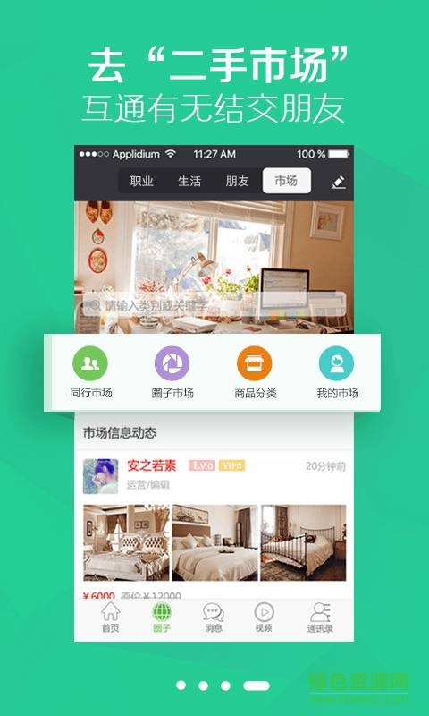 “圈子facechat”综合拥有facebook和snapchat的社交功能,包括视频情景聊天,职业圈、生活圈、视频、市场等,让你的圈子越来越大,越来越多,让生活从此精彩