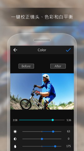 极速剪辑,一键修补 – 内建强大调整工具,一次解决从裁剪、调整亮度、白平衡到对比度修正等问题。