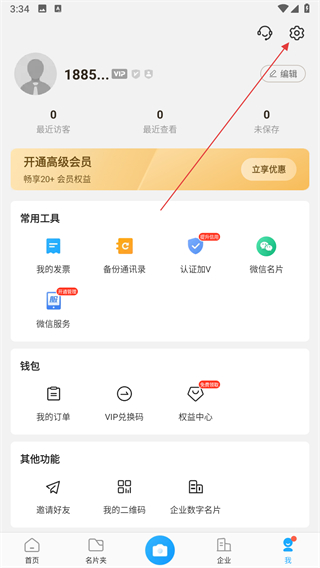 2、在个人中心页面中找到右上角的设置按钮,点击该按钮进入设置界面。