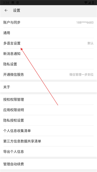3、在设置界面里找到多语言设置选项,点击后进入语言选择页面。