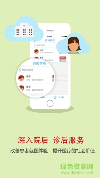 添加您的门诊患者至“我的患者”,诊疗后可对患者病情进行跟踪、随访;