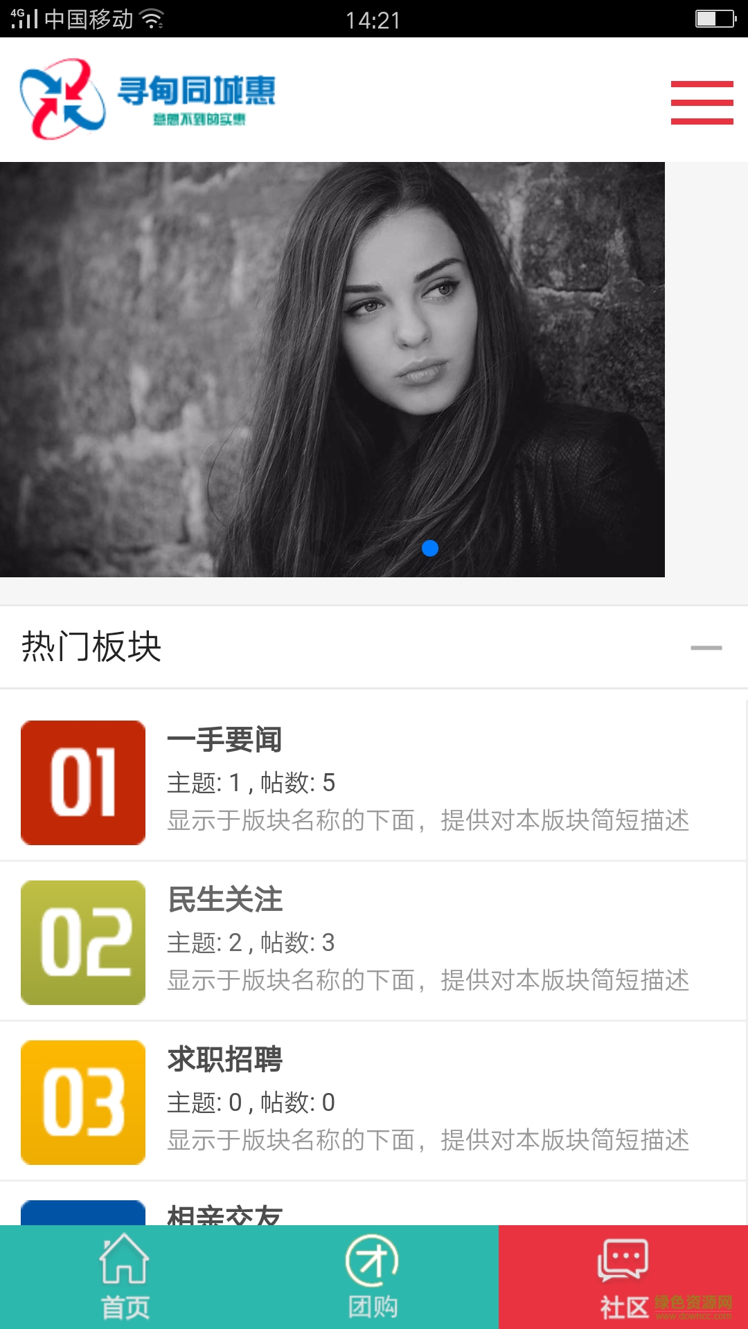 社区热门板块:一手新闻、民生关注、求职招聘、相亲交友