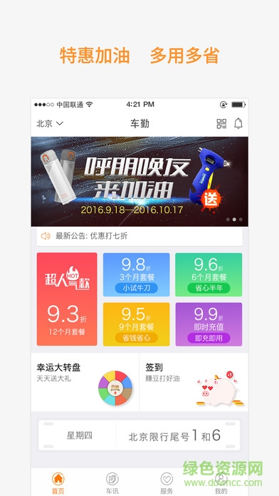 u用app是一款非常便捷的手机加油软件,用户可以在这里你进行加油卡的充值,可以进行汽车的保养,可以查看最新的囚车资讯,喜爱的朋友赶快到绿色资源网下载使用吧!