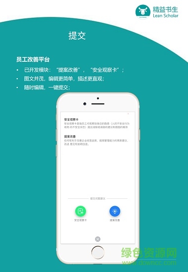 精益书生APP内含两个功能模块,分别是《提案改善》和《安全观察卡》,移动管理随时提交,移动审批,及时追踪。效率10倍提升;图文并茂,点赞评论,随时交流分享,创造价值。《精益书生》由无锡乐善网络科技有限公司服务,致力于企业改善管理产品研发与服务,让企业改善变得更容易!