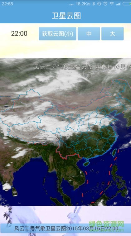 3.实时获取中央气象台的数据,得到当前及之前中国及周边上空的云图。