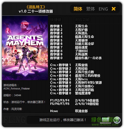 混乱特工二十一项修改器是一款功能强大的游戏修改器,主要针对同名pc游戏玩家打造,使用修改器玩家可以轻松修改游戏中的子弹时间、生命、连跳、伤害等属性,需要的朋友欢迎来绿色资源网下载!
