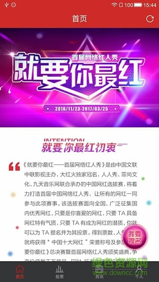 红人秀大赛app是一款由中智科讯(北京)网络科技有限公司专为中国网红选拔赛打造的手机投票客户端软件,需要的朋友赶紧来绿色资源网下载,给你喜欢的网红投上一票吧~