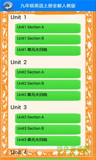 九年级英语上册全解人教版app是一款强大词汇量的学习类应用软件,用户可以随时随地在里面找寻你所需要的英语单词、句子、短语等,方便了学者们的生活方式,同步发音,让你更好的学好英语,赶快登陆绿色资源网开始下载吧!