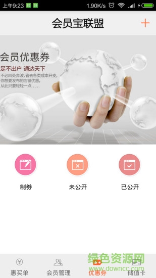 3、员宝提供商户端和会员端两个部分,商户可以查看自己名义下的会员情况,能够管理积分、代金券、优惠券等功能,有效的为会员提供服务。