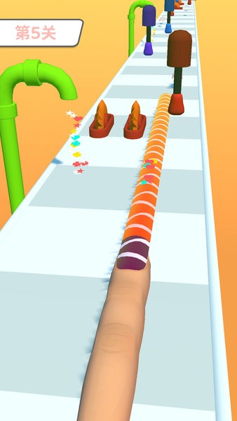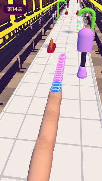 我指甲贼长有着非常魔性的画风,游戏以大家熟悉的跑酷玩法为主,但是这一次你要控制的并不是人,而是一根手指,它有着长长的指甲,可以不断延伸前进,大家可以捡起路边的指甲油和小贴纸进行装饰,看看你的指甲能长到多长。