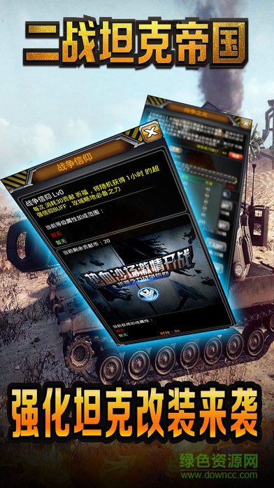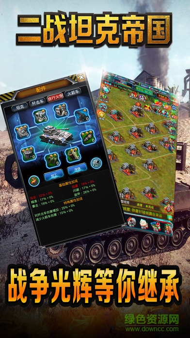 二战坦克帝国是一款以二战为背景的策略对战手游,游戏真实的还原了时期场景,设计了超多军械设备任你选择,玩家扮演的是一位指挥官,在这里你可以快速组建军队不断战斗扩充疆土,快来绿色资源网下载吧!