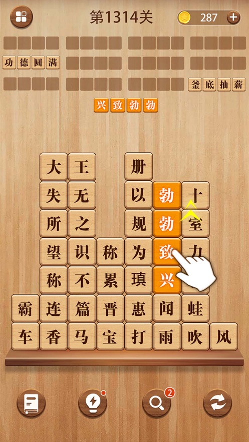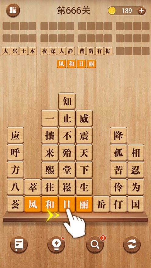 2、从中找到成语,从头连到尾,即可消除该成语,消除完即可过关。
