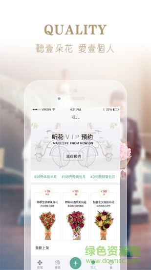 听花手机版是一款网络在线购买鲜花的应用软件,在这里你可查看话语、在线预订鲜花,以及分享文章等,想要给独一无二的Ta送去最浪漫的祝福吗?那就快来绿色资源网下载这款听花app吧,更多惊喜等你来体验!