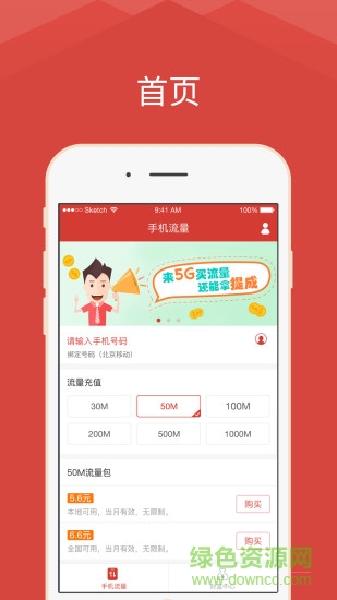 5g流量app是一款非常方面的流量充值软件,5g流量app为广大用户打造一个便捷的流量充值平台,用户可以随时随地想冲就冲,再也不用担心流量不够用等问题了,增加了出行方便等效率,还在等什么,登陆绿色资源网开始下载吧!