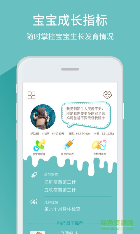 针对培养:用知识守护宝宝健康成长,推送宝宝的发育指标,喂养指南,保健知识,常见疾病及护理等。