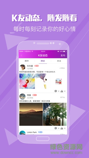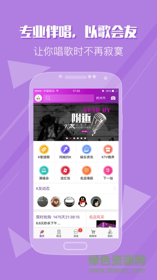 下单约女神助唱师一起去KTV唱歌,查看附件K友,发动态赢得好友关注,认识陌生人。