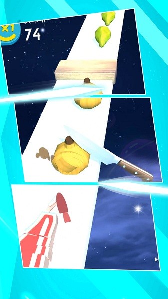 2、清新精致的卡通画风,在特定的场景之内进行切割,考验你的手速;