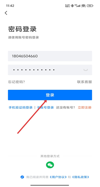 4、在输入账号和密码后,点击登录按钮,完成账号密码登录操作。