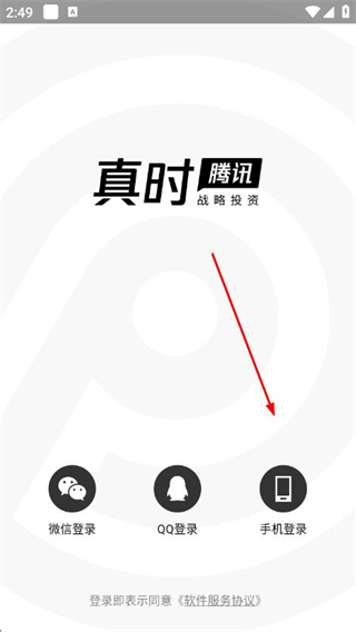 1、在真时运动的登录选择页面,点击手机登录选项。