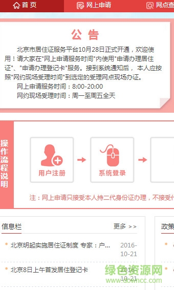 请大家在"网上申请服务时间"内使用"申请办理居住证"、"申请办理登记卡"服务。
