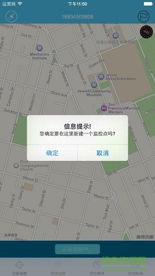 2,卫星追踪,实时跟踪并显示目标的轨迹;你可以在普通地图和卫星地图之间切换;自定义追踪:你可以不限于默认的跟踪,你可以自定义轨迹,自定义轨迹可以不受时间限制,随时追加纪录;建立监控点:你可以设置多个监控点,当你打开记录器,目标接近监控点(或者监控点附近的基站)1000米、500米、50米时,系统会给出声音和文字提示,当程序处于后台运行时,系统也会给出语音提示;