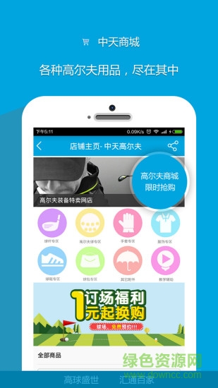 2、中天商城,我们的商城系统包括球包、球杆、球具、服饰用品等,每天更有特价高尔夫精美用品抢购;