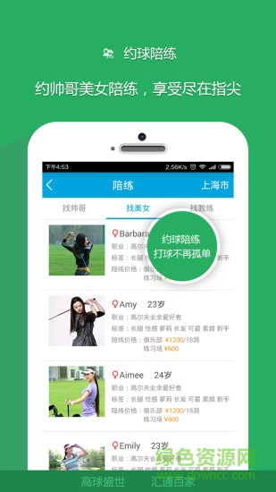 8、高尔夫球陪练,快来我们的约球陪练功能,找美女,找帅哥,找教练,你想要的这里都有;