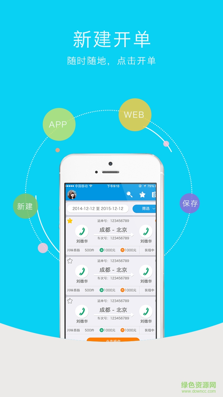 4.运单可以让物流公司完成随时随地轻松开单,业务操作指针对不同状态运单进行的确认装车、确认到达等操作,联系人帮助物流公司管理客户,方便联系与快捷开单,财务管理是系统针对运单所做的财务统计;