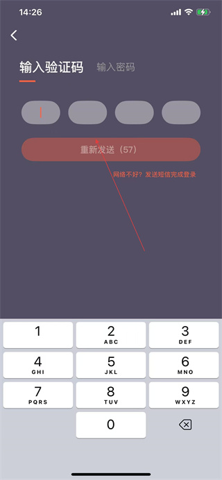 3、 在验证码输入页面,填写收到的短信验证码,完成账号登录操作。