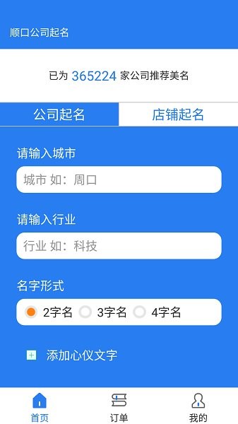 公司店铺起名app让用户带来的优质的公司名称推荐,在线的取名给用户极速的审核给你的公司全新的寓意,好的名称给人不一样的感受,开公司的用户不会取名的可以通过软件看看,有需要的用户可以来下载试试吧!