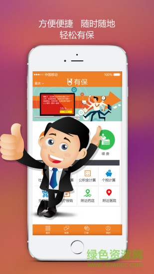 有保手机客户端是一款为广大用户提供社保,公积金等保险查询和缴费服务的一款手机应用软件,用户通过软件可以轻松的完成生活中一系列的服务查询操作,为日常生活带来了便利,有需要的朋友欢迎来绿色资源网下载使用!
