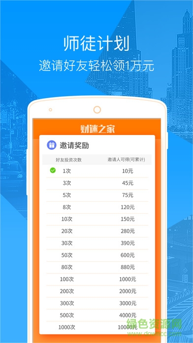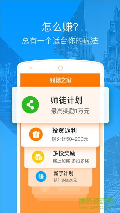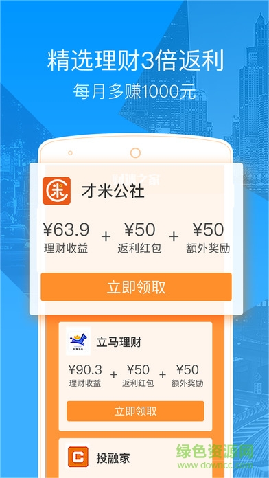 财迷之家ios版是由广州小迈网络科技有限公司提供的理财返利平台,用户通过财迷之家,投资推荐的理财产品,可享受理财产品自身收益之外,额外50~200元不等的奖励,理财返利新玩法!快来绿色资源网下载尝试一下吧!