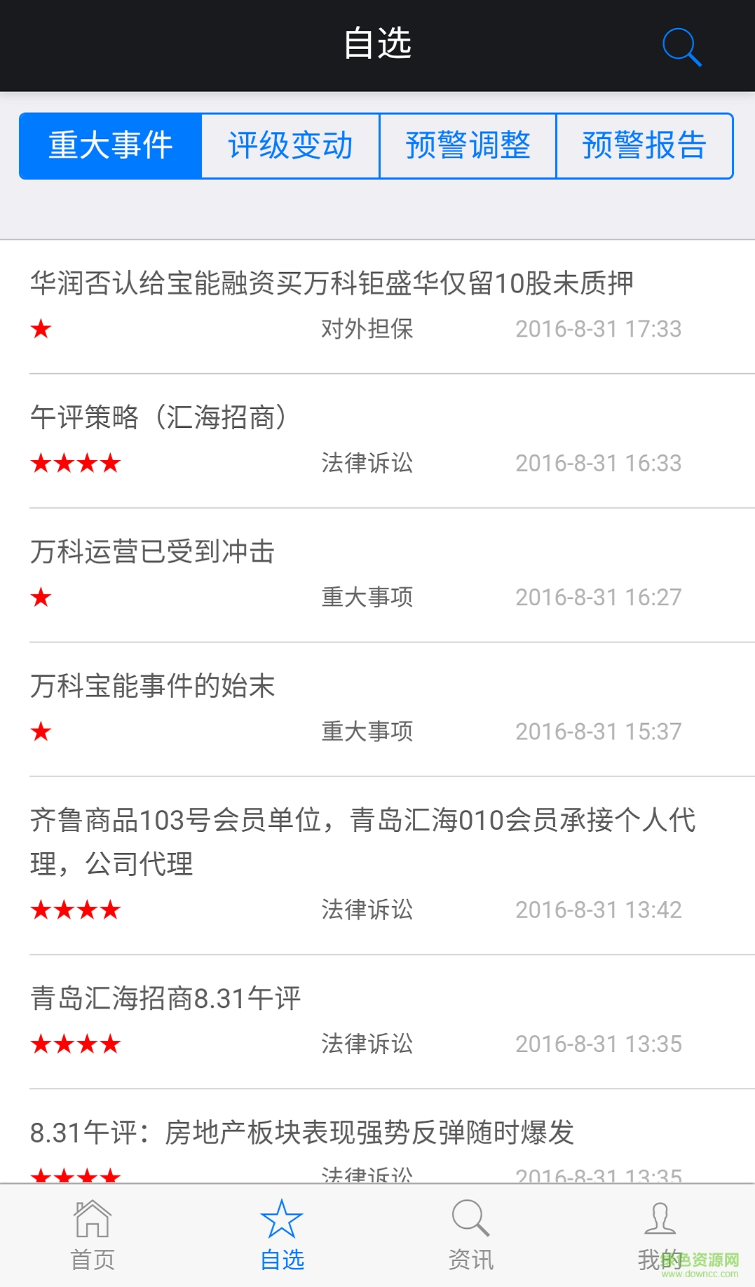 1.可以查看主体预警报告、资讯、主体里面有基本信息重大事件财务数据等,而资讯里面可以收藏、分享到各个社交媒体。
