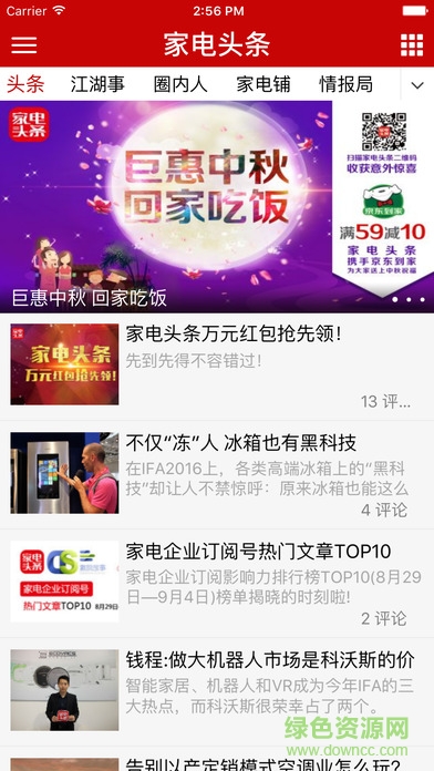 家电头条app是由中国家电网推出的一款关于家电行业的新闻资讯软件,在这里你可以了解各种家电行业的相关资讯,还可以在这里买到物美价廉的家电商品,需要的朋友快来绿色资源网下载体验吧!