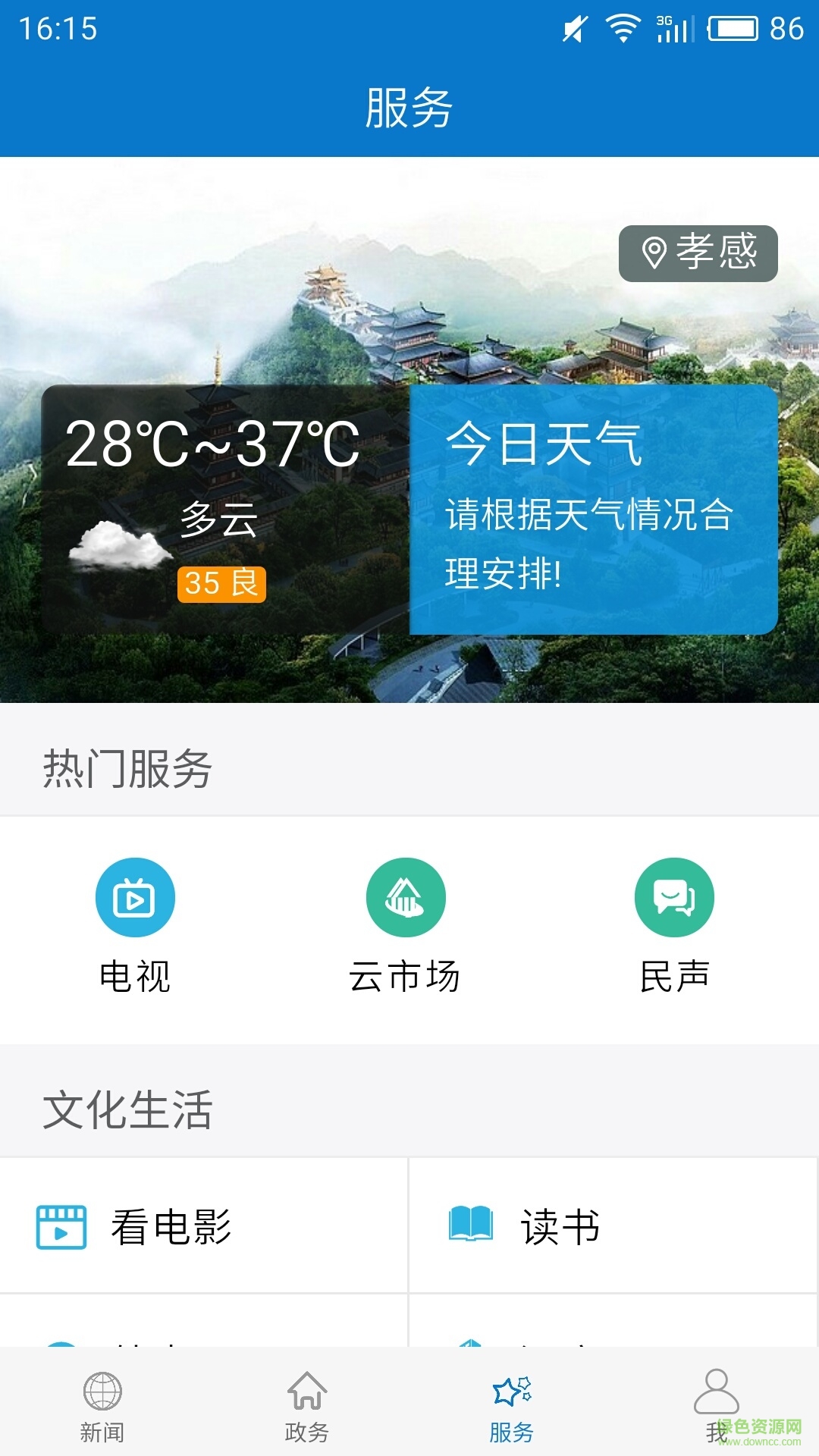云上孝感手机app是一款专门为孝感地区的人们打造的新闻资讯软件,用户可以通过云上孝感app了解孝感市的政务等信息、新闻资讯等,这款软件还为市民提供了便民服务,是一款非常实用的应用软件,需要的朋友快来绿色资源网下载体验吧!