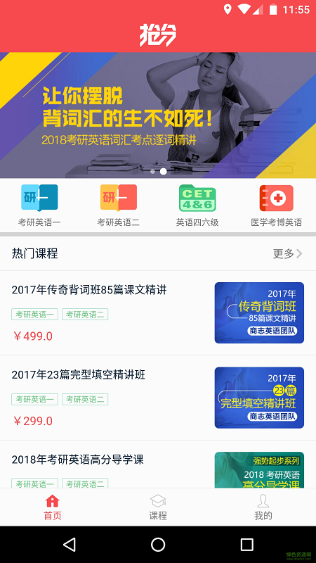 抢分苹果版是一款非常好用的教育学习类软件,在这这里有非常多的学习知识和教育视频是专为高考,考研打造的抢分神器,而且里面还有非常多的教授让用户在线咨询,最新最有效的学习方法和技巧!感兴趣的小伙伴们快来绿色资源网下载吧!