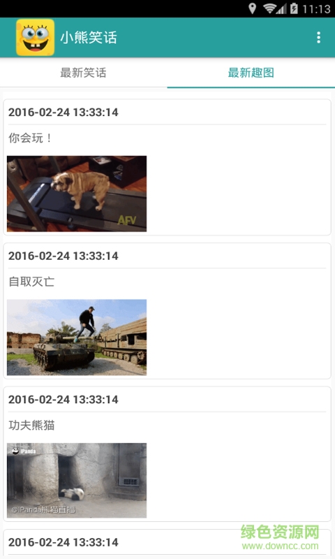 3.主页面可观看近期发布的笑话和趣图。